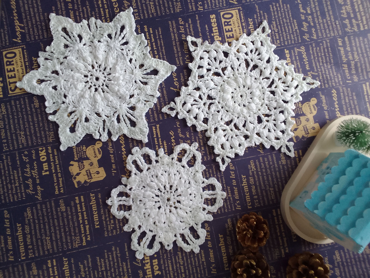 Здравствуйте . Уже у всех подготовка к новому году идёт полным ходом . Конечно и я не исключение , решила заранее подготовиться . Ну и конечно куда же без снежинок. Мне кажется они самое главное украшение . А сколько видов и материалов для их изготовления , можно устать , если перечислить все . А я решила их связать . Использовала пряжу мерсеризованный хлопок белого цвета , нить в два сложения . Для фиксации снежинок использовала раствор , клей ПВА+вода 1 : 1 . Ну и конечно блёстки , очень много блёсток. Снежинки получаются очень нежные , красивые и просто сказочными . 1. 2. 3. 4. 5. Снежинки малышки Они маленькие , но от этого не менее красивые. 1. 2. 1. 2. Приятного вязания !!!