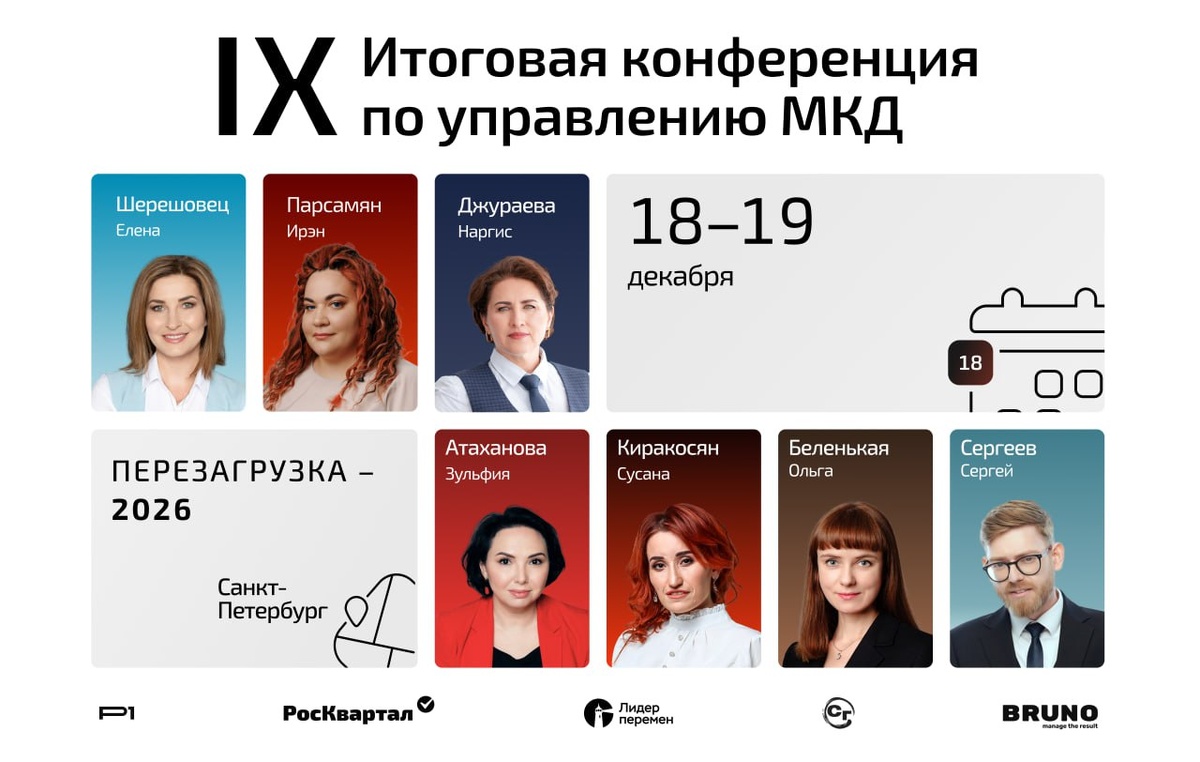 ✅ Открываем завесу: темы и эксперты первого дня IX Итоговой конференции в Петербурге В первый день Перезагрузки–2026 сосредоточимся на главных темах уходящего года – тех, что определили повестку ЖКХ и сформировали новые ориентиры на 2026-й. ✅ В программе 18 декабря: ▪️ ключевые законодательные изменения ▪️ разбор свежих НПА ▪️ налоговая реформа ▪️ антикризисный PR в УО ▪️ работа с ПДн ▪️ актуальная судебная практика в сфере управления МКД 🩷 Спикеры первого дня: Ирэн Парсамян, Елена Шерешовец, Наргис Джураева, Зульфия Атаханова, Сусана Киракосян, Ольга Беленькая и Сергей Сергеев. 📎 Подробная программа и регистрация #Перезагрузка2026 #интеллектуальный_штаб_ЖКХ