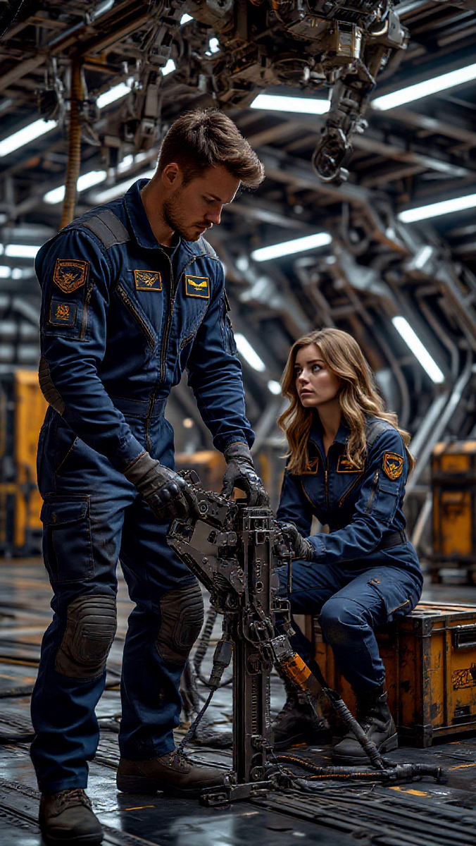 В уютном полумраке их личного ангара на «Сфере-2» царила почти что идиллия. Воздух был наполнен сладковатым запахом гидравлической жидкости и свежего полимерного покрытия, которым недавно обработали пол. В центре зала, под мягким светом направленных прожекторов, стоял «Возрожденец», а у его брюха, в свете портативной лампы, копошился Игорь. Он с завидным упорством разбирал многослойный узел стыковочного шлюза, аккуратно раскладывая детали на разложенной рядом ветоши.