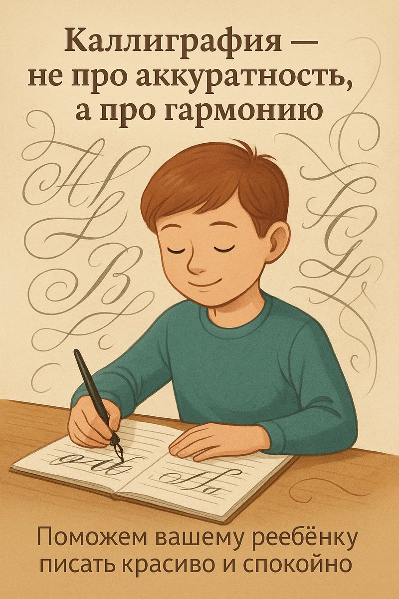 Иногда родители говорят: “Он пишет неразборчиво, сам потом не может прочитать”. Я улыбаюсь — ведь знаю, что это не про лень и небрежность. Просто ребёнок ещё не почувствовал, что письмо — это движение с ритмом и смыслом, не механика. Когда ребёнок пишет, его мозг, глаза и рука работают вместе. Если этот “оркестр” звучит неровно — появляются ошибки, неровные буквы, усталость. А когда мы добавляем внимание к форме, красоте, дыханию — почерк выравнивается, а вместе с ним и внутреннее состояние. Я веду обучение письму и каллиграфии для детей онлайн, и это удивительный процесс. Ребята начинают писать не просто аккуратнее — они становятся спокойнее, внимательнее, увереннее. Почему важно заниматься каллиграфией Почерк — это не только эстетика. Это способ развивать внимание, терпение и мелкую моторику. Пальцы становятся гибче, рука послушнее, а мозг — точнее. Недаром психологи говорят: “Посмотри, как пишет человек — и ты узнаешь, как он думает”. Современные дети живут в мире экранов, где