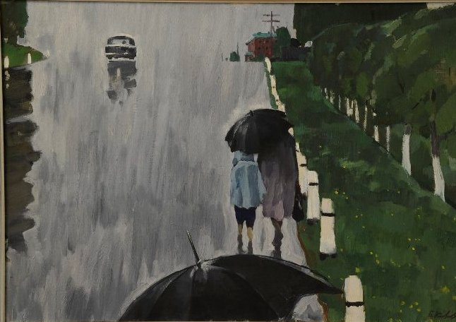 Корнеев Борис Васильевич (1922, Петрозаводск-1973, Ленинград) Дождик. 1960. Х.,м. 70х100. Серпуховский историко-художественный музей. Грустная картина. Но идти по оочине опасно - собьют! Корнеев Борис Васильевич (15.02.1922, Петрозаводск - 24.12.1973, Ленинград). Интерьер. 1958. Холст, масло. 36х54,5.