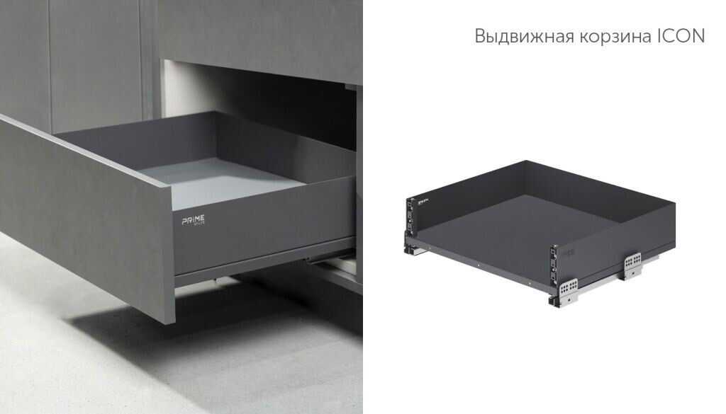 Именно для таких задач создана новая премиальная линейка ICON от Prime by AKS. Надежные выдвижные корзины, функциональные бутылочницы, универсальные карго, продуманные колонны и магические углы — всё, что необходимо для идеальной кухни, собрано в одной коллекции.
