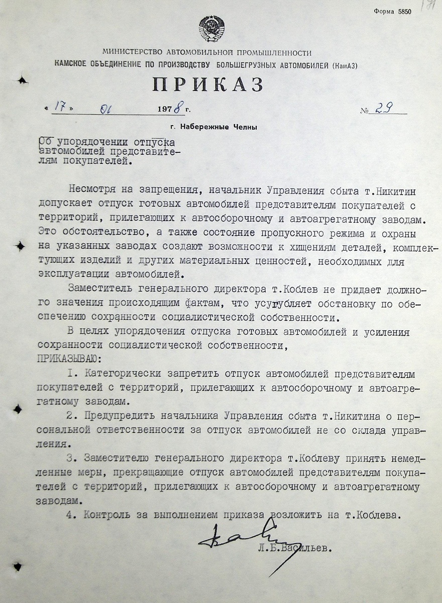 Как только КАМАЗ стал набирать темпы по выпуску камских большегрузов со всей страны в Набережные Челны потянулись представители АТХ и других организаций с целью приобрести для своих предприятий новенькие автомобили. Некоторые из них, всеми правдами и неправдами, пытались получать автомобили не по установленному порядку, а, что называется, прямо после схода их с главного сборочного конвейера. Прочтите приказ генерального директора КАМАЗа №29 от 17 января 1978 года «Об упорядочении отпуска автомобилей представителям покупателей». Спрос на автомобили КАМАЗ был так высок, а бюрократические препоны на их получение так сильны, что многие водители, приехавшие со всех уголков Советского Союза, по несколько дней ждали свои заветные грузовики. В газете «Труд» от 18 января 1979 года была опубликована жалоба на камазовский отдел сбыта. Газета «Известия» от 1 августа 1979 года опубликовала письмо Егорова В. – автомеханика ПМК-9 из горда Шахты, Ростовской области.