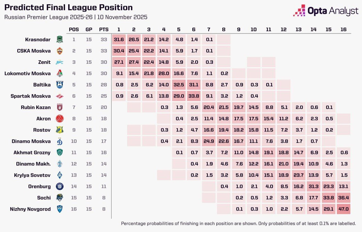 Суперкомпьютер Opta уверен, что Рубин по итогам сезона будет на 7-9 месте. ❤️ Злобный Рубин ❤️