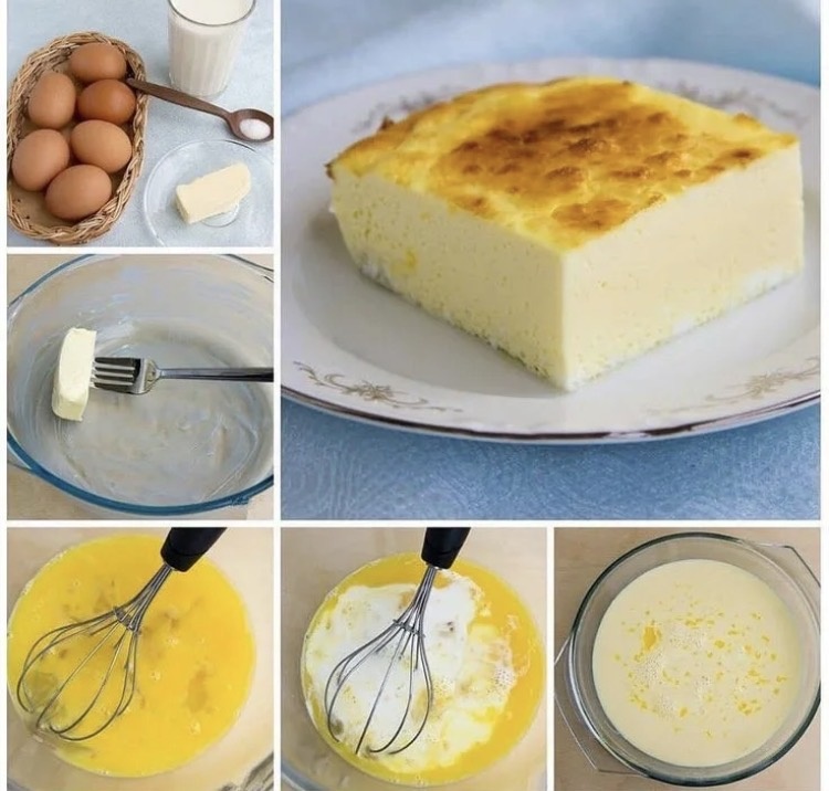 - Разогреть сковороду с растительным маслом, аккуратно влить на неё яичную массу и убавить нагрев до минимального.