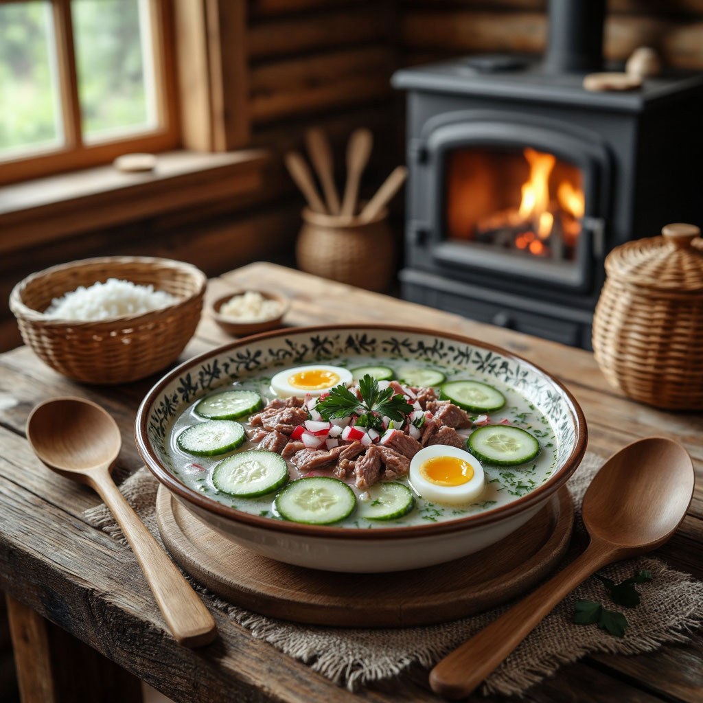 Когда летняя жара отбивает всякий аппетит, на помощь приходит окрошка — холодный суп, который веками спасал русских людей в знойные дни. Это не просто смесь нарезанных овощей с квасом, а тщательно сбалансированное блюдо, где каждый ингредиент играет свою роль. Исторически окрошку готовили из остатков мяса и овощей, заливая их хлебным квасом — получалось и освежающе, и экономно. Почему окрошка стала культовым блюдом? • Идеальное сочетание прохлады и сытности