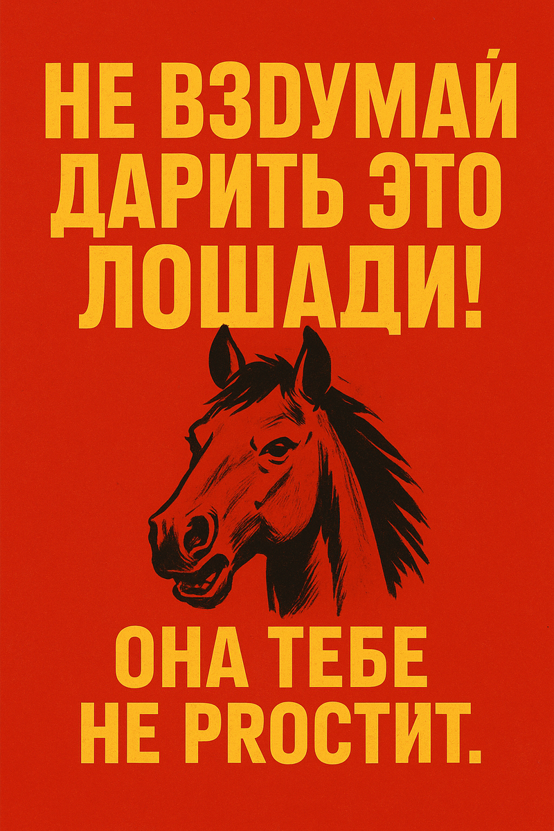 И поэтому под бой курантов на столах оказываются не символы изобилия, а могильные памятники здравому смыслу.🔥 Хватит дарить ерунду, которую Лошадь сочтёт насмешкой