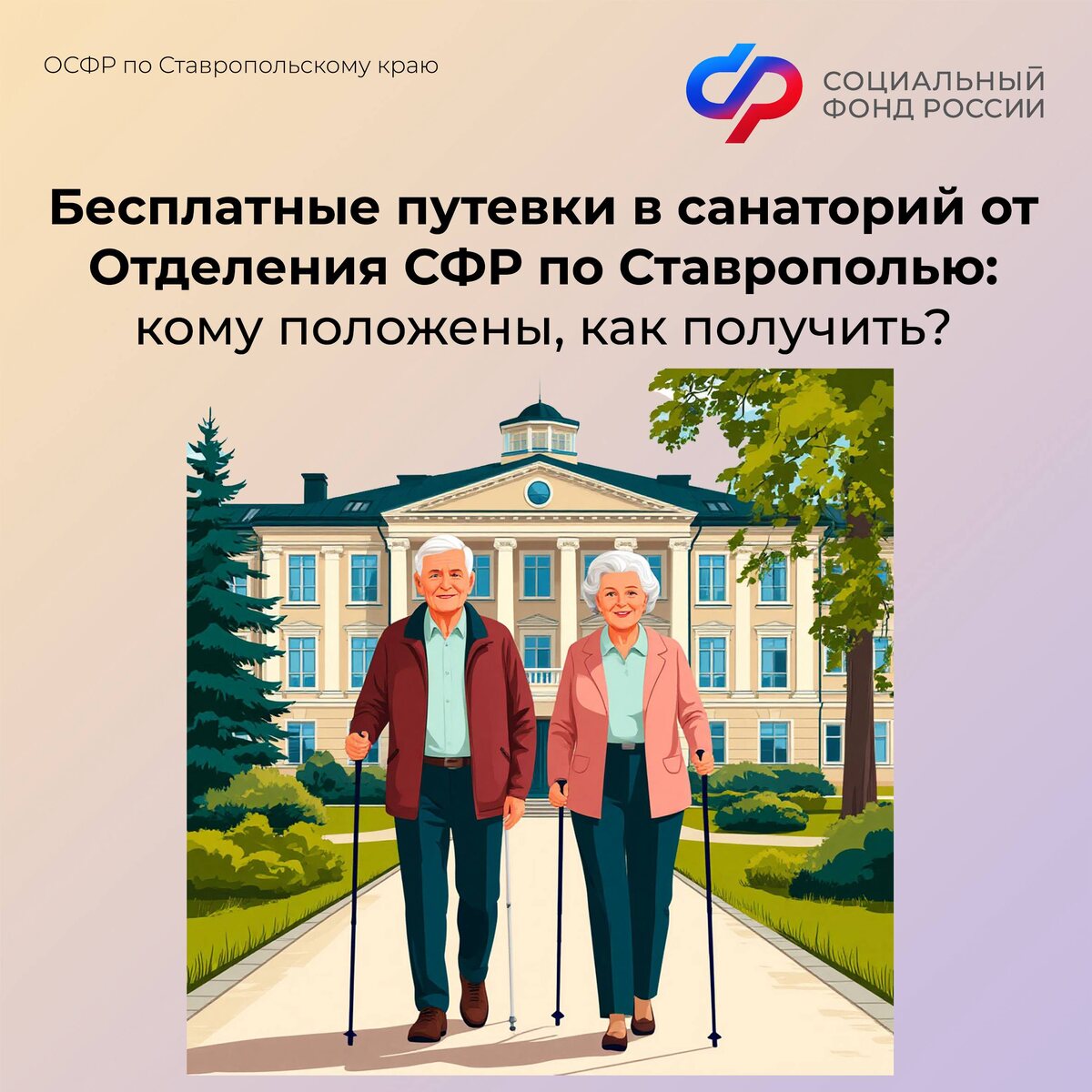 ✅Отделение СФР по Ставропольскому краю предоставляет федеральным льготникам путевки на санаторно-курортное лечение