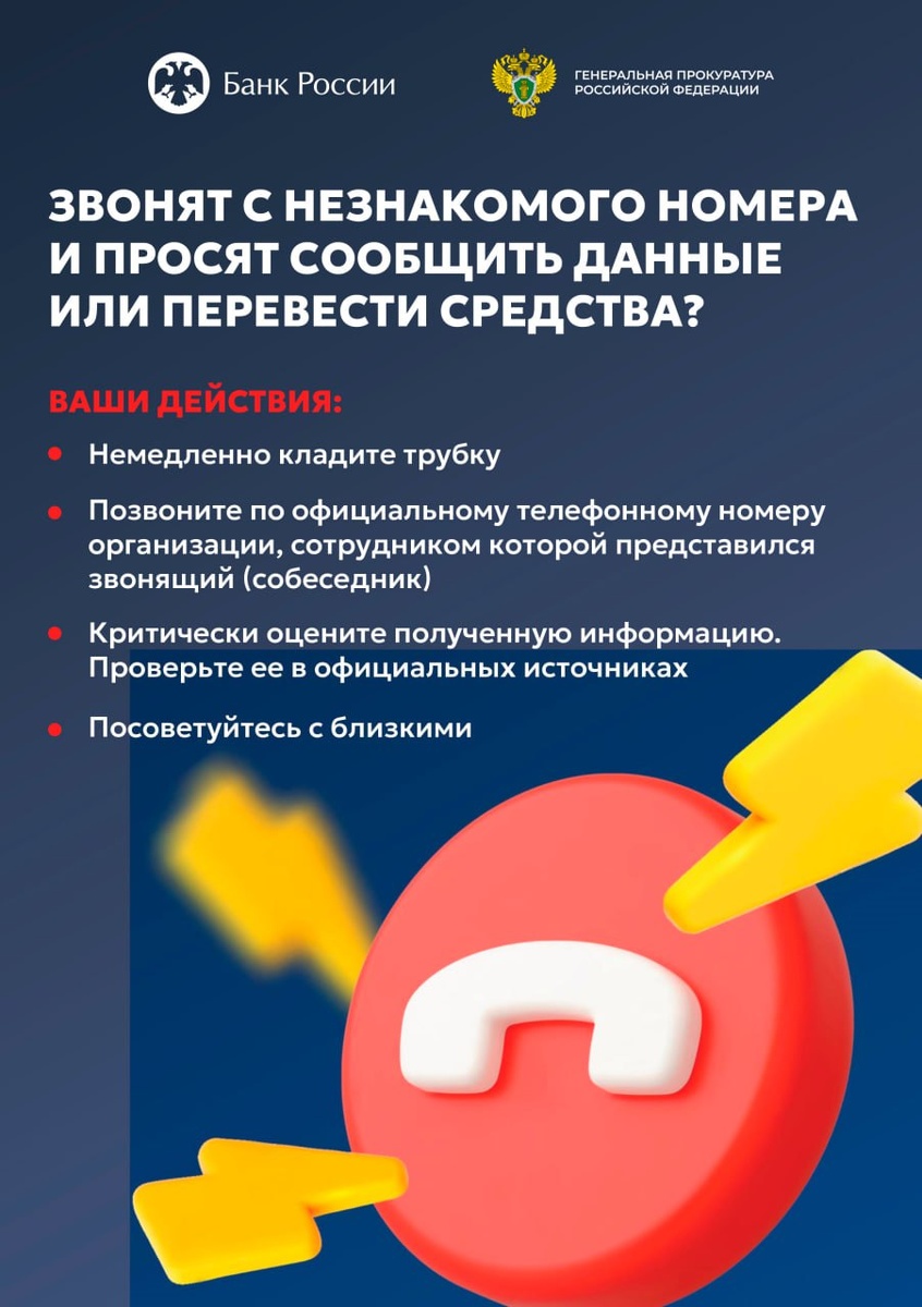 ⚖️ Во исполнение плана работы межведомственной рабочей группы по противодействию преступлениям с использованием информационно-телекоммуникационных технологий Банк России совместно с Генеральной прокуратурой РФ подготовили материалы по профилактике телефонного мошенничества.