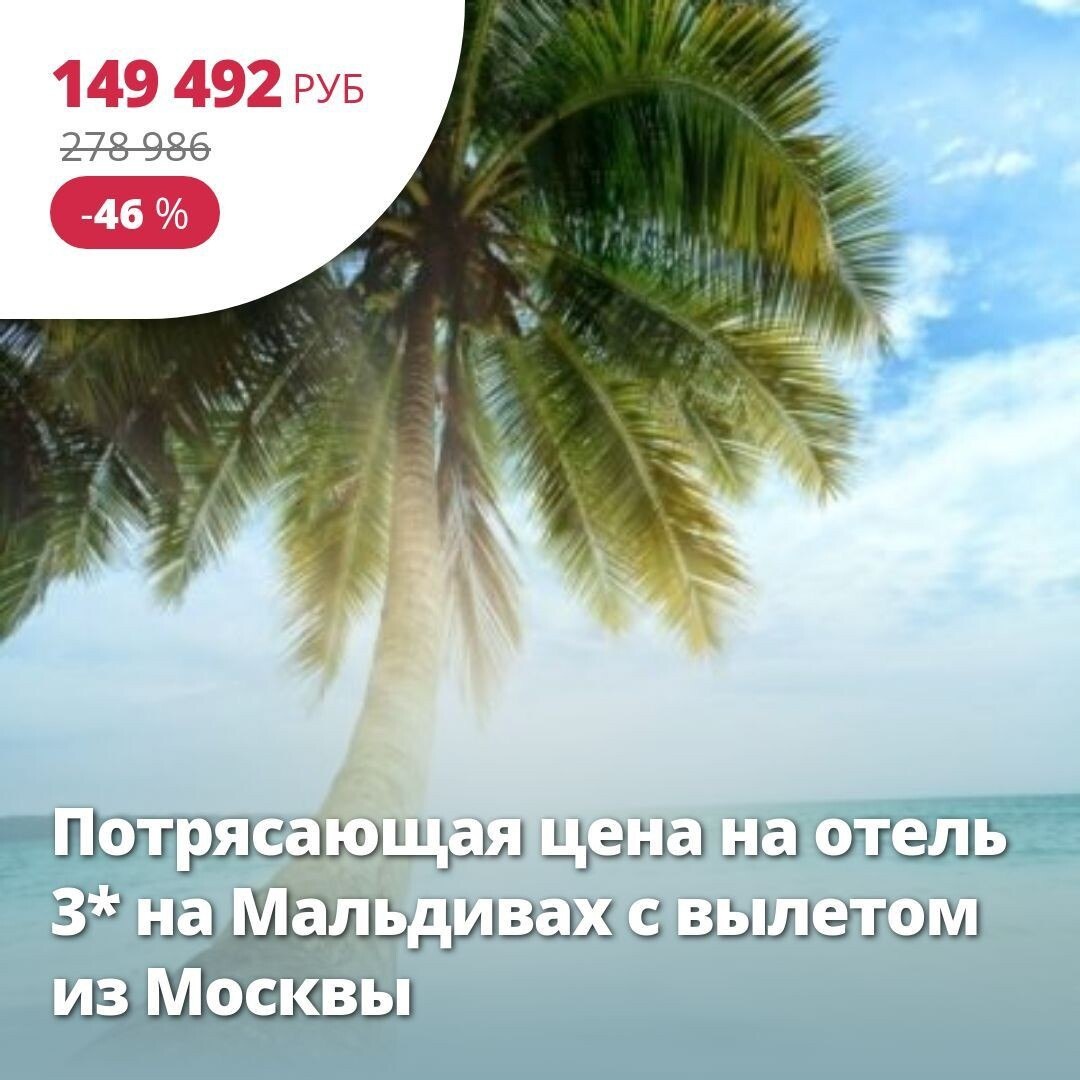 🔥 Цена тура: 149 492 руб/чел ❤️ Потрясающая цена на отель 3* на Мальдивах с вылетом из Москвы 🏠 3*, Мальдивы, Мальдивы из Москвы 25 ноября на 11 ночей. Мальдивы — это более тысячи коралловых островов в окружении ласковых вод Индийского океана. Здесь райские пляжи с белоснежным песком, богатая тропическая природа и высокий уровень сервиса. Это экзотическое направление выбирают любители роскошного размещения, бесконечного покоя, красивых фотографий. Подробнее здесь: https://starttime.ru/search-tours?tvcard=p5vitp Лучшие туры https://starttime.ru/search-tours #ЛучшийТур #СтартТайм