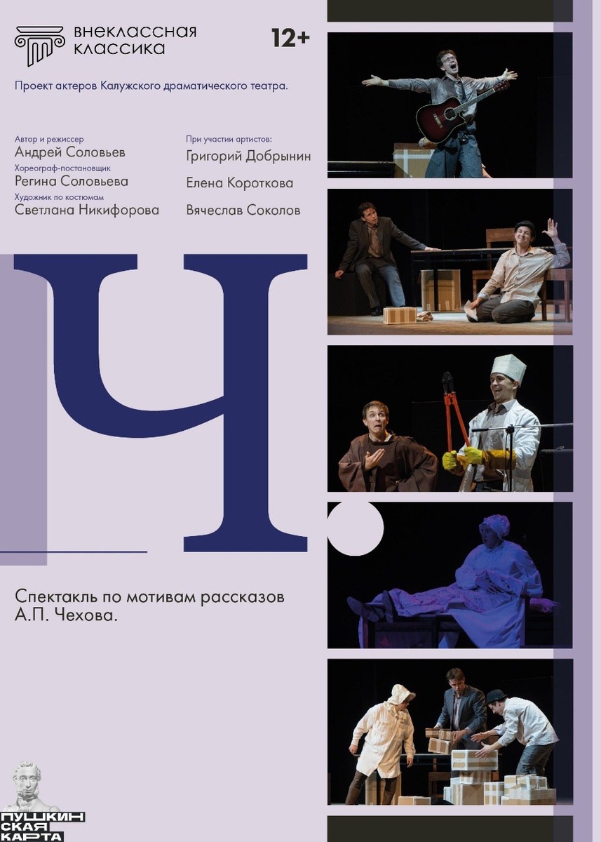 🎭20 ноября в 14:00 в ДК ФЭИ в Обнинске пройдёт юмористический спектакль «Ч» по рассказам А.П. Чехова. Это компиляция рассказов «Драма», «Хирургия», «Трагик по неволе», «Выигрышный билет», «Рыбья любовь» и другие. Самый смешной спектакль из цикла «Внеклассной классики». Антон Павлович Чехов - человек с удивительным чувством юмора. Хочется, чтобы молодежь в зале увидела, что такой великий автор, как Чехов, тоже может быть веселым, простым и очень интересным. 🎟Билеты в кассе (Вт-Сб с 13:00 до 19:00) или онлайн по ссылке: https://biletof.com/action/?ra=17197&frame=1&action=10146&place=410. Обнинск, пр-т Ленина, 15. 👍 Подписаться | Ваша реклама