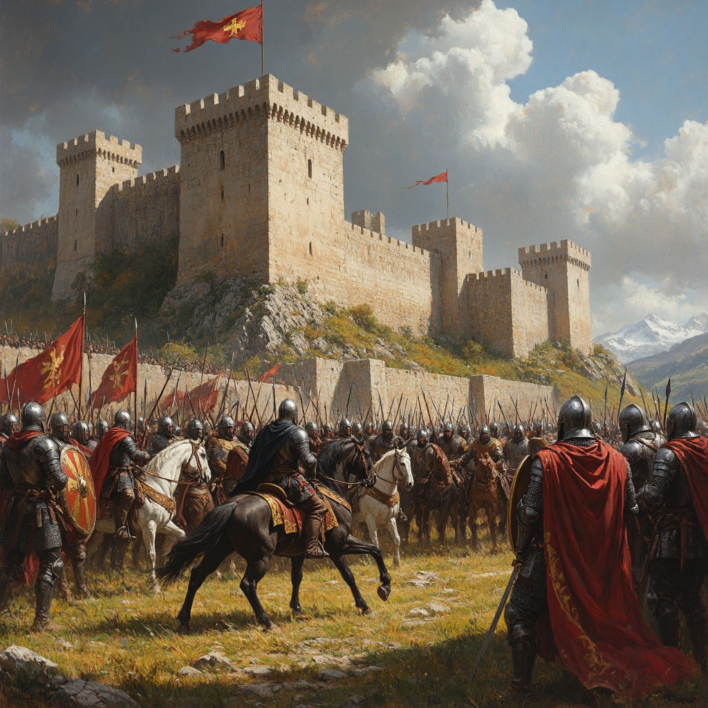 В далёкие времена, когда вера и меч решали судьбы народов, по землям Испании прокатилась грозная буря войны. Король Карл Великий, правитель франков, семнадцать лет вёл свои полки через горы и равнины, сокрушая города и обращая язычников в христианство. Его армия, как стальная река, прорезала враждебные земли, но один город упорно держался — Сарагоса, последний оплот сопротивления. За её стенами правил Марсилий, царь сарацин, хитрый и гордый, не желавший склонять колена перед чужеземным королём. Устав от долгих сражений, Карл Великий расположился у подножия холмов, ожидая решительного штурма. Но Марсилий, понимая, что силы не равны, задумал коварство. Он послал к Карлу гонцов с поклоном и дарами — золотом, слоновой костью, шкурами львов и обещанием принять крещение. Главное — он клялся прибыть в Ахен, столицу Карла, и поклясться в верности. Французские бароны, измученные походами, склонились к миру. Лишь один из них восстал против: граф Роланд, племянник самого Карла, воин с сердцем льв