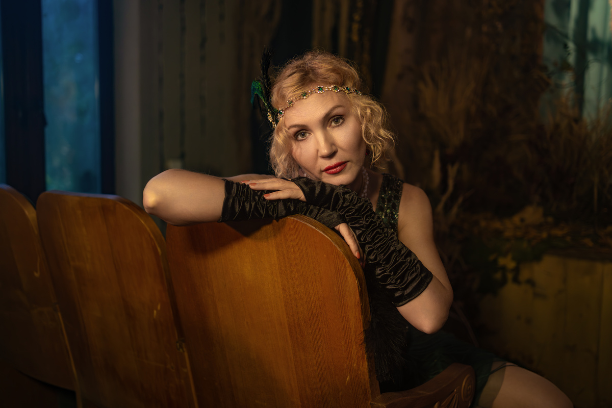Получившиеся снимки — это не просто фотографии, а целая история о красоте, которая может расцвести даже в самых неожиданных местах. Контраст между гламурным образом в стиле «Великого Гэтсби» и готической эстетикой «королевы тьмы» создал уникальную динамику. Оба образа в сочетании с атмосферой заброшенного театра воплотили идею о том, что красота и вдохновение могут родиться на стыке роскоши и упадка, элегантности и мистики.