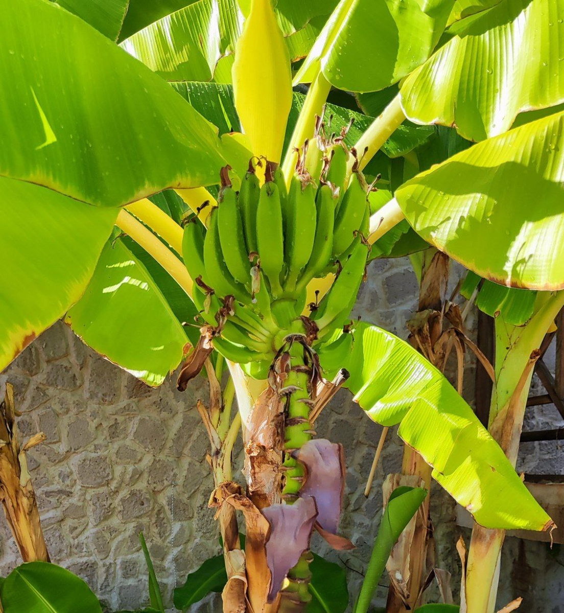 Банан - гигантская трава с псевдостеблем. Он растёт быстро, любит тепло и влагу, но не переносит сквозняков. В открытом грунте в России не выживет, но в теплице — вполне.