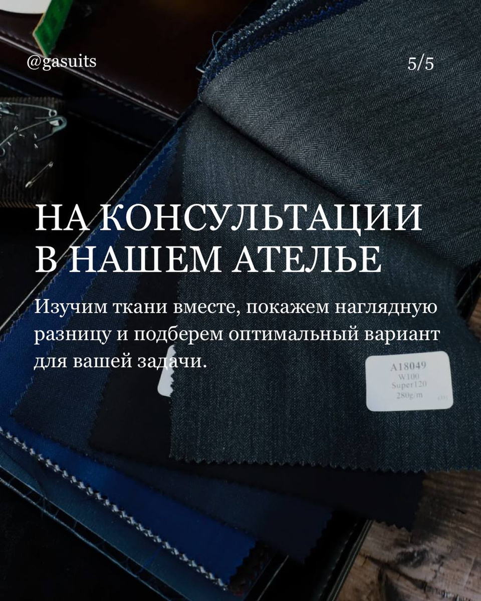 Цифра рядом с Super показывает, сколько километров нити сделали из одного килограмма шерсти. Например, Super 130's = 130 км нити из 1 кг шерсти высшей категории. Соответственно, чем выше цифра, тем тоньше нить, а ткань более мягкая и сияющая. На консультации можно сравнить ткани с разными индексами и почувствовать разницу, она действительно есть. Почему индекс важен? Ткань с более высоким индексом будет мягче на ощупь, легче драпироваться и чаще иметь более благородный вид. Но чем выше индек