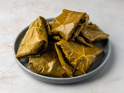 - Осторожно развернуть виноградные листья и хорошо смыть под холодной водой лишнюю соль. Затем обсушить листья бумажными полотенцами.