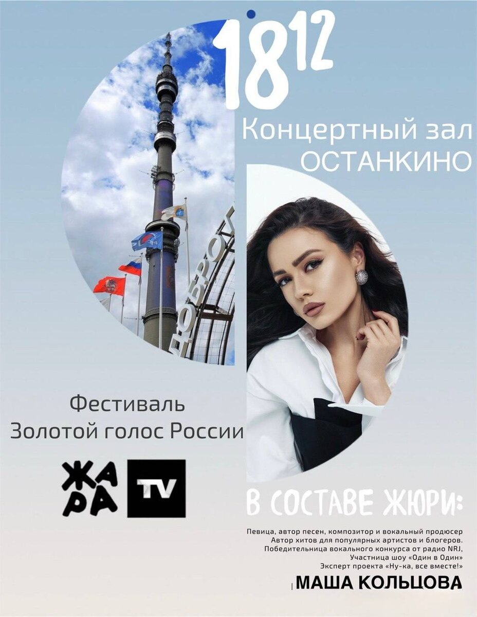 В составе жюри Фестиваля Золотой голос РОССИИ — певица, автор песен, композитор и вокальный продюсер. Эксперт проекта «Ну-ка, все вместе!» Автор хитов для популярных артистов и блогеров. Победительница вокального конкурса от радио NRJ Участница шоу «Один в Один» - МАША КОЛЬЦОВА