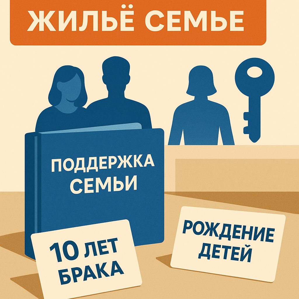 — Контекст текущих мер: федеральная программа «Молодая семья» — это субсидия на покупку/строительство жилья (частичная оплата), а не «бесплатная квартира». Программа действует до 2030 года. РБК Недвижимость