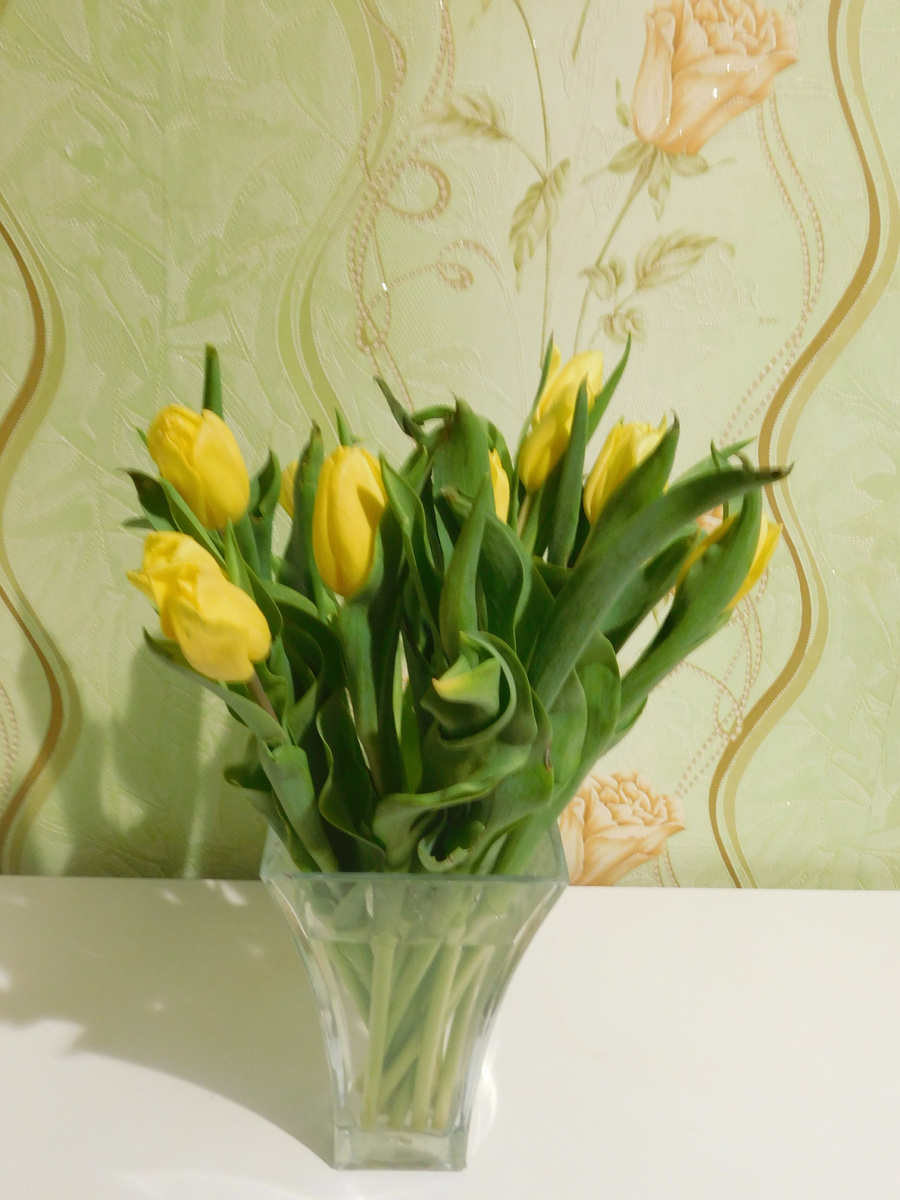 — Это тебе, — проговорил парень, и достал из-под полушубка, букетик тюльпанов.