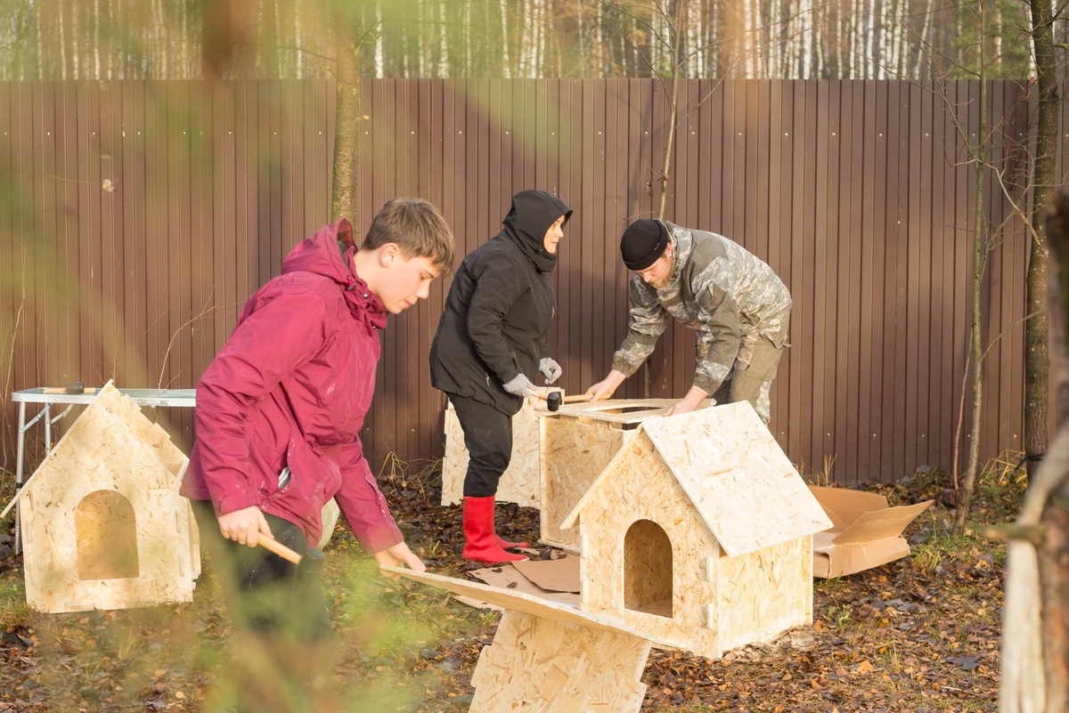В Иванове волонтеры сделали домики для собак из приюта 8 ноября в Иванове прошла Всероссийская акция помощи приютам «Дари Тепло!». 40 неравнодушных участников изготовили уютные вольеры и связали тёплые лежанки для приюта «Майский день». Также ребята привезли корм, лекарства и всё необходимое. Для тех, кто не смог поучаствовать лично, была возможность приобрести благотворительный мерч, средства с продажи которого пошли на помощь приютам. Цель акции — помочь четвероногим друзьям подготовиться к суровой зиме. Фото: БФ «Экосфера» / ВКонтакте