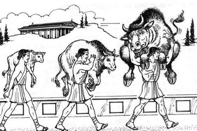 Первая — о Мило́не Кротонском. Говорят, свою легендарную силу греческий атлет развил благодаря прогрессивным тренировкам. Каждый день Милон носил на плечах одного и того же телёнка, поднимаясь с ним на холм. С каждым днём телёнок становился всё тяжелее, а значит, Милон постепенно становился сильнее.