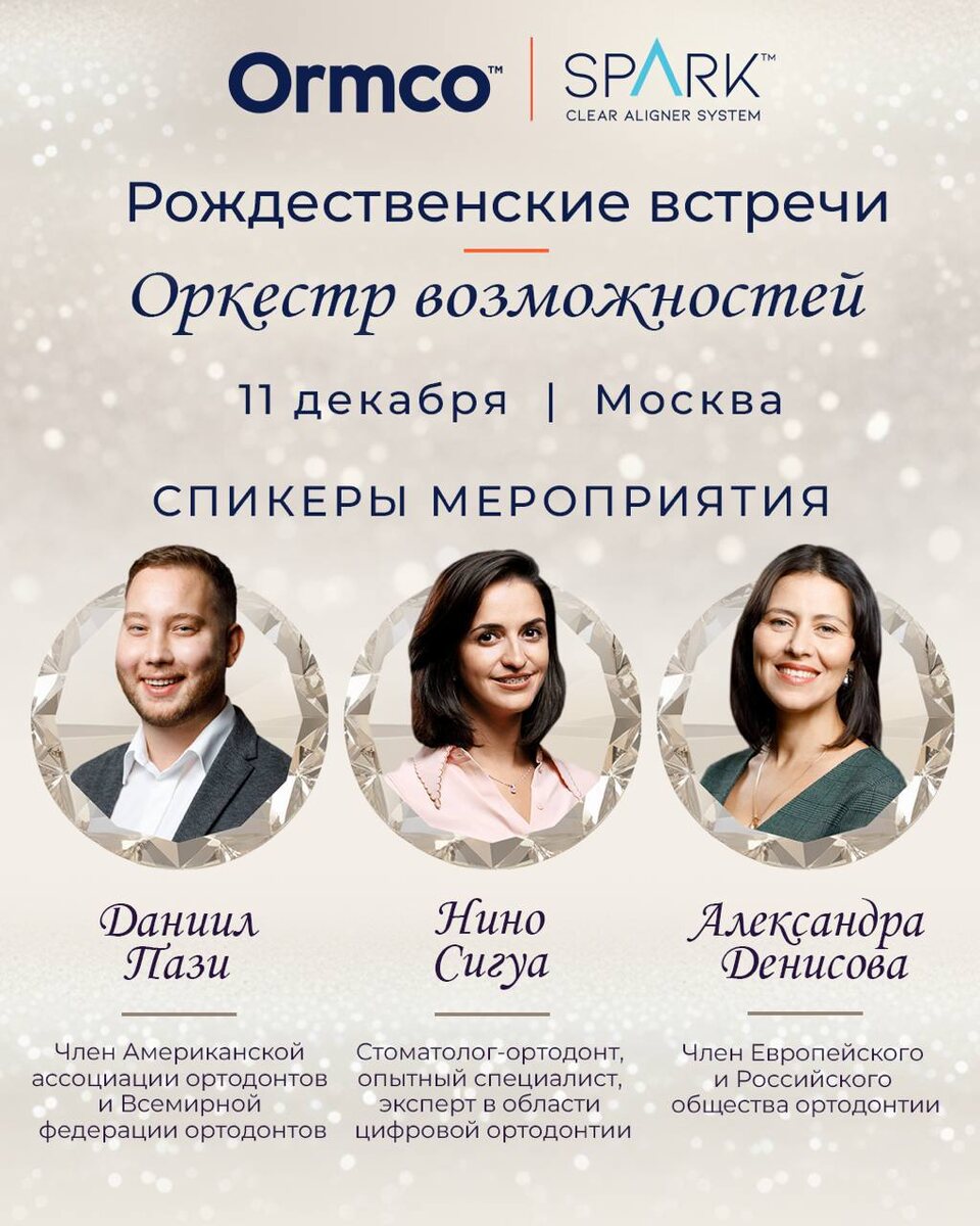 🎄 Рождественские встречи: Оркестр возможностей В этом году Ormco и Spark объединяются, чтобы создать по-настоящему волшебное событие — симфонию знаний, вдохновения и профессионального роста! ✨ Это не просто конференция. Это встреча единомышленников — врачей, которые стремятся к совершенству, верят в инновации и создают улыбки, меняющие жизни. 📅 11 декабря 2025, Москва, отель "Сафмар Гранд", ул. Тверская 26/1 Спикеры мероприятия: 🔹 Пази Даниил Борисович - Врач-ортодонт, член Американской ассоциации ортодонтов и Всемирной федерации ортодонтов. ➡ Откроет встречу лекцией «Рождественский адвент-календарь ортодонта: откройте для себя возможности Spark и Damon Ultima» и завершит день вдохновляющим выступлением «Рождественская симфония: успех и профессиональный рост в практике врача-ортодонта». 🔹 Денисова Александра Алексеевна - Член Европейского и Российского общества ортодонтии. ➡ Представит научно-практическую лекцию «Дистальная окклюзия: праздничное меню коррекции. Сравнительная э