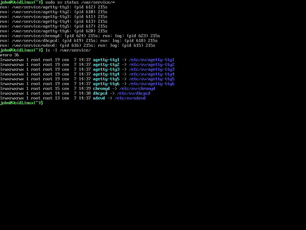 sudo ls -l /etc/sv/ - просмотр всех сервисов какие доступны в системе