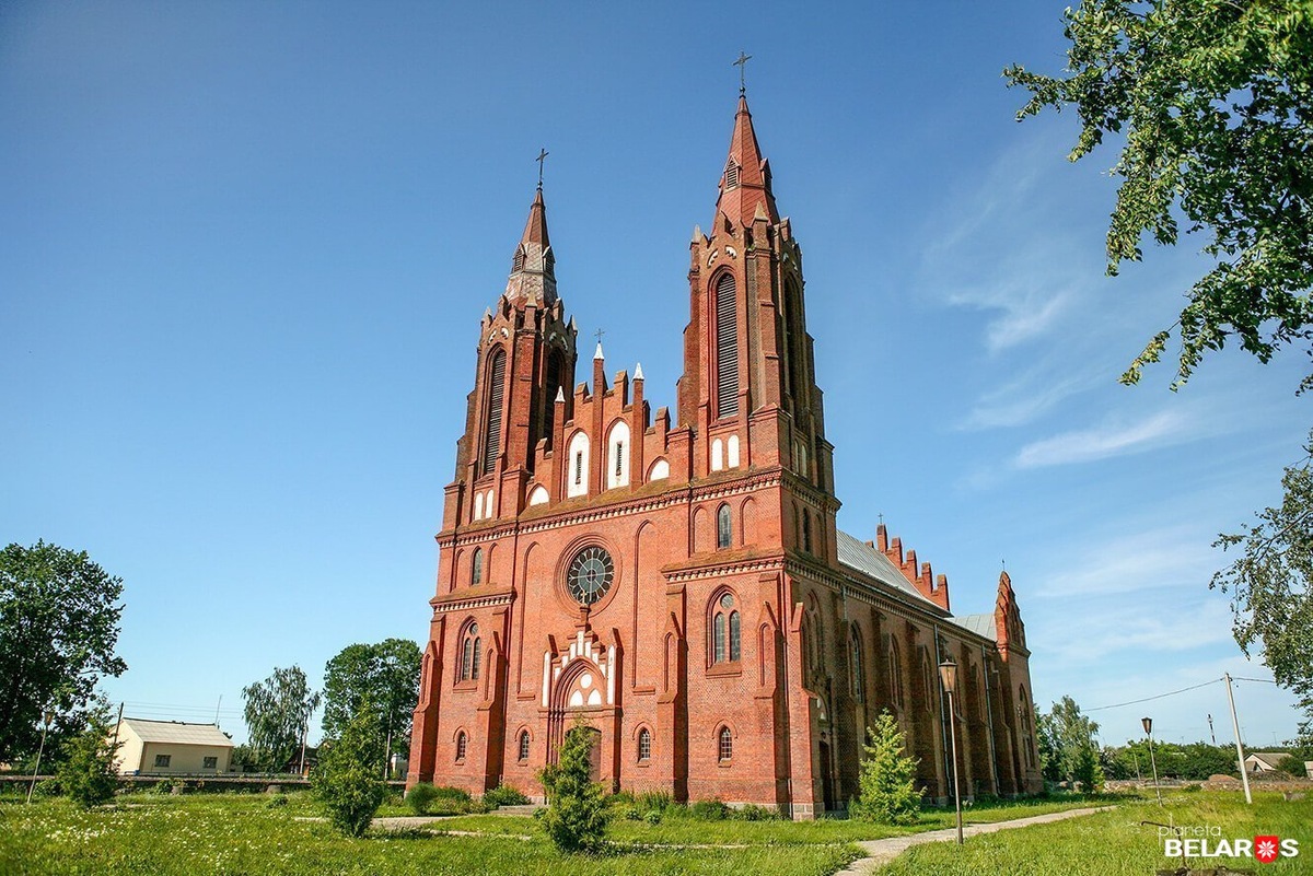Величественный, исполненный достоинства костел Наисвятейшей Девы Марии, построенный в 1902–1909 гг., возвышается в центре деревни. Легкими, ниспадающими линиями ступенчатых контрфорсов обрисованы углы двух его неоготических башен, между которыми заключен зубчатый аттик с побеленными нишами. Этот бело-красный мотив повторен в оформлении верхней части портала. В ограду храма встроена часовенка с зубчатым фронтоном и тщательно выложенными камнем стенами. Камень эффектно использован и в конусообразной каплице-усыпальнице на кладбище – она интригует своим почти средневековым «замковым» обликом.