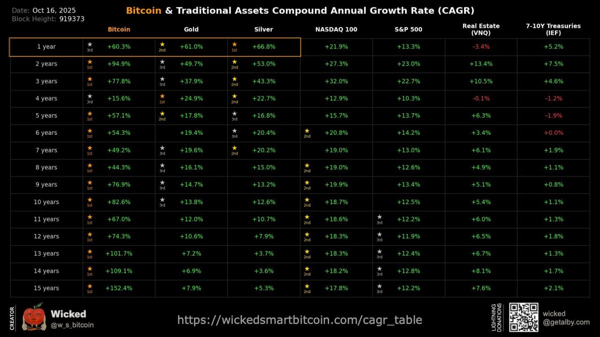 WICKED: 🟠 Gold and silver just outshined Bitcoin, taking the top spots year-over-year! Looks like BTC has slid down to 3rd place now