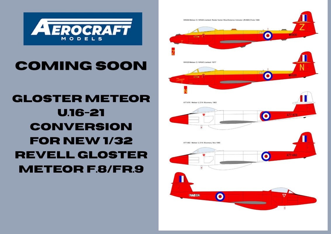 Aerocraft Models из Великобритании выпускает смоляной конверсионный набора для постройки модели Meteor U.16-21 в масштабе 1/32 на базе Meteor Mk.8 /9 от Revell.