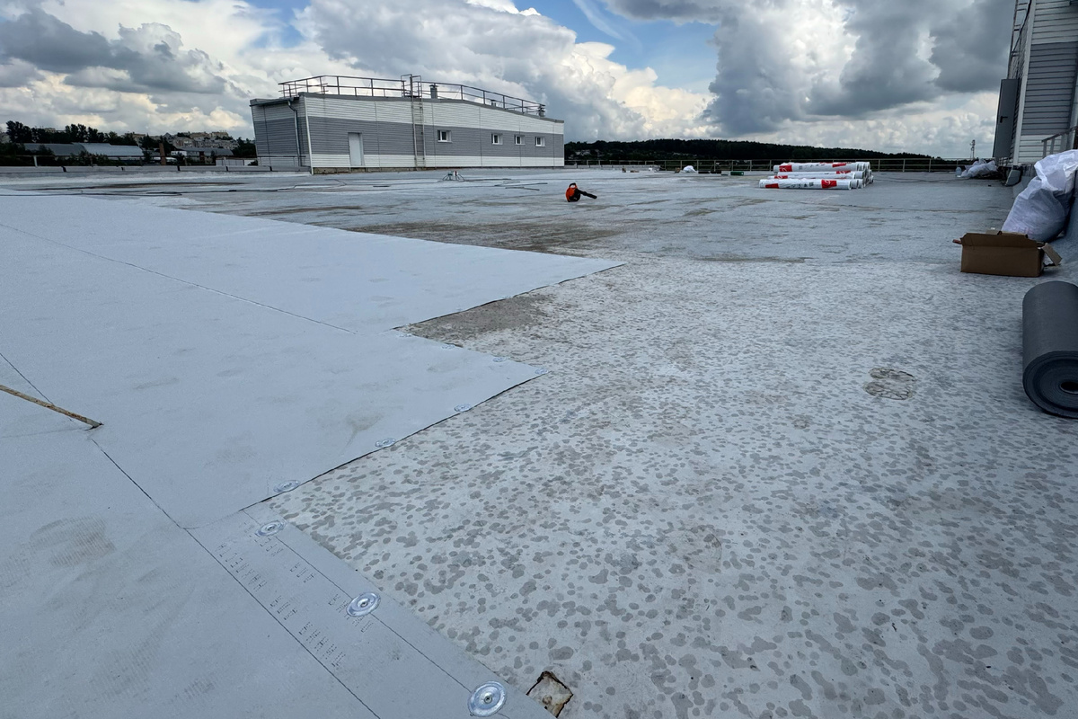Мембранные системы сегодня — один из самых универсальных вариантов для гидроизоляции плоских кровель. Их используют не только при новом строительстве, но и при капитальных ремонтах, где нужно быстро и надёжно восстановить герметичность. 📍 Основные сферы применения: — Складские комплексы и логистические центры. Большие площади и высокая нагрузка на кровлю требуют прочных и эластичных систем, устойчивых к стоячей воде и перепадам температур. — Торговые и офисные здания. Мембрана даёт аккуратный внешний вид и возможность быстро устранять дефекты без демонтажа всей системы. — Промышленные объекты. Химическая стойкость и высокая прочность позволяют использовать покрытия в агрессивных средах. — Здания с эксплуатируемыми кровлями. На таких крышах размещают оборудование, террасы, кафе, и важно, чтобы изоляция выдерживала механические воздействия. — Бюджетные и социальные объекты. Простота монтажа и длительный срок службы снижают затраты на обслуживание, что особенно актуально для школ, боль