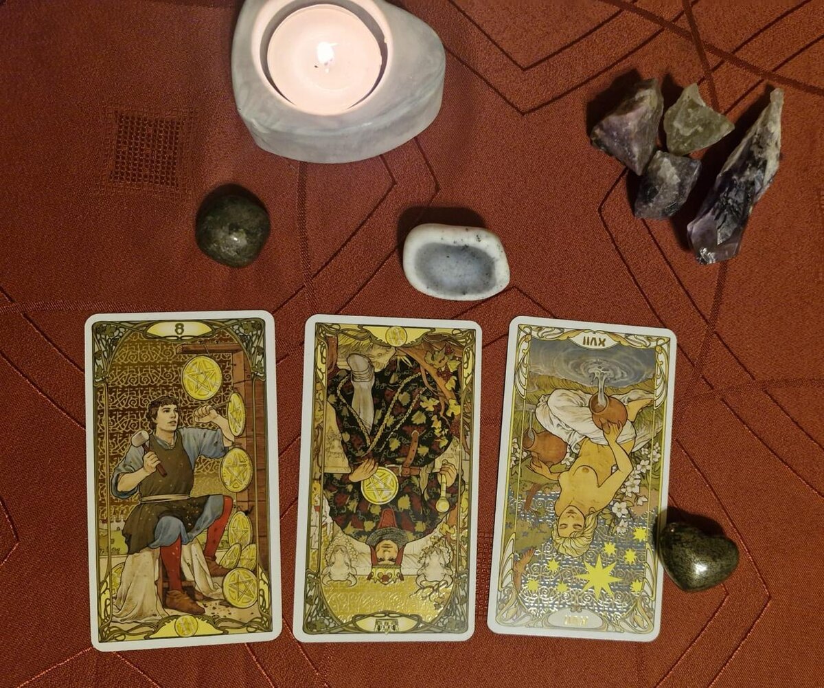 Приветствую всех, друзья! 👋 Давайте посмотрим, что карты Таро хотят поведать нам для этой недели. 🤔 ⛏ 8 Пентаклей, Король Пентаклей перевёрнутый 🪨 и перевёрнутая Звезда 🌠. Расклад скорее всего говорит о внутреннем выгорании. Мы можем старательно трудиться и делать всё правильно, как привыкли, но ощущение смысла постепенно гаснет. 🤬 В какой-то момент привычка трудиться перестаёт быть источником силы — она превращается в автоматическое движение, где нет ни радости, ни вдохновения. ⚙️ Такое вполне может произойти из-за излишнего контроля со стороны начальства 💼, придирок, давления или просто прохладного отношения. Но перевёрнутый Король Пентаклей также может говорить и о личной неспособности к объективному восприятию ситуации и утрате понимания, для чего я делаю то, что делаю. 🤷♀️ Эта неделя может напомнить, что труд без души не питает и порой мы теряем связь с тем, ради чего вообще что-то начинали. Порой жизнь будто спрашивает нас: умеем ли мы работать не из страха что-то по