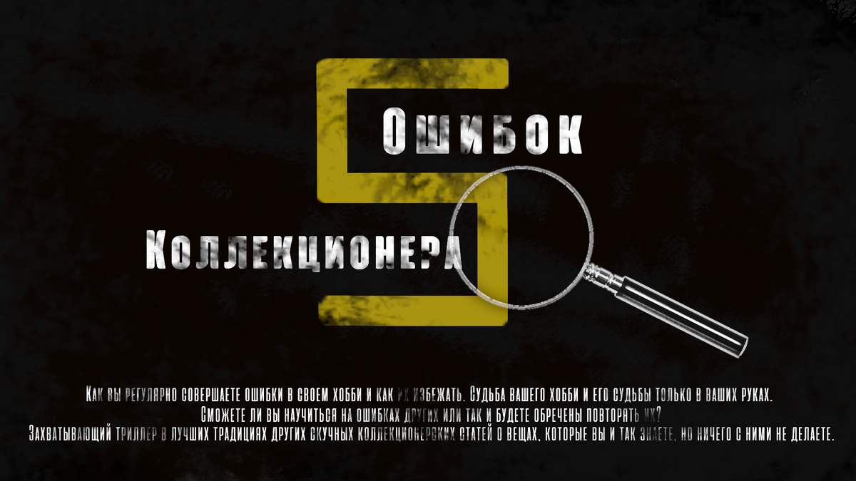 Как я уже упоминал в самом начале – коллекционирование это увлечение сложное и комплексное, а потому ошибки в нем явление постоянное. Некоторые из них критичны, некоторые будут просто мелким недоразумением. Но наша задача стремиться к тому, чтобы таких вот косяков было как можно меньше. Старайтесь не просто коллекционировать, а ещё и анализировать этот процесс. Следить за успехами и провалами, анализировать их причины и использовать выводы в дальнейшей деятельности. А я пожелаю вам в этом удачи.