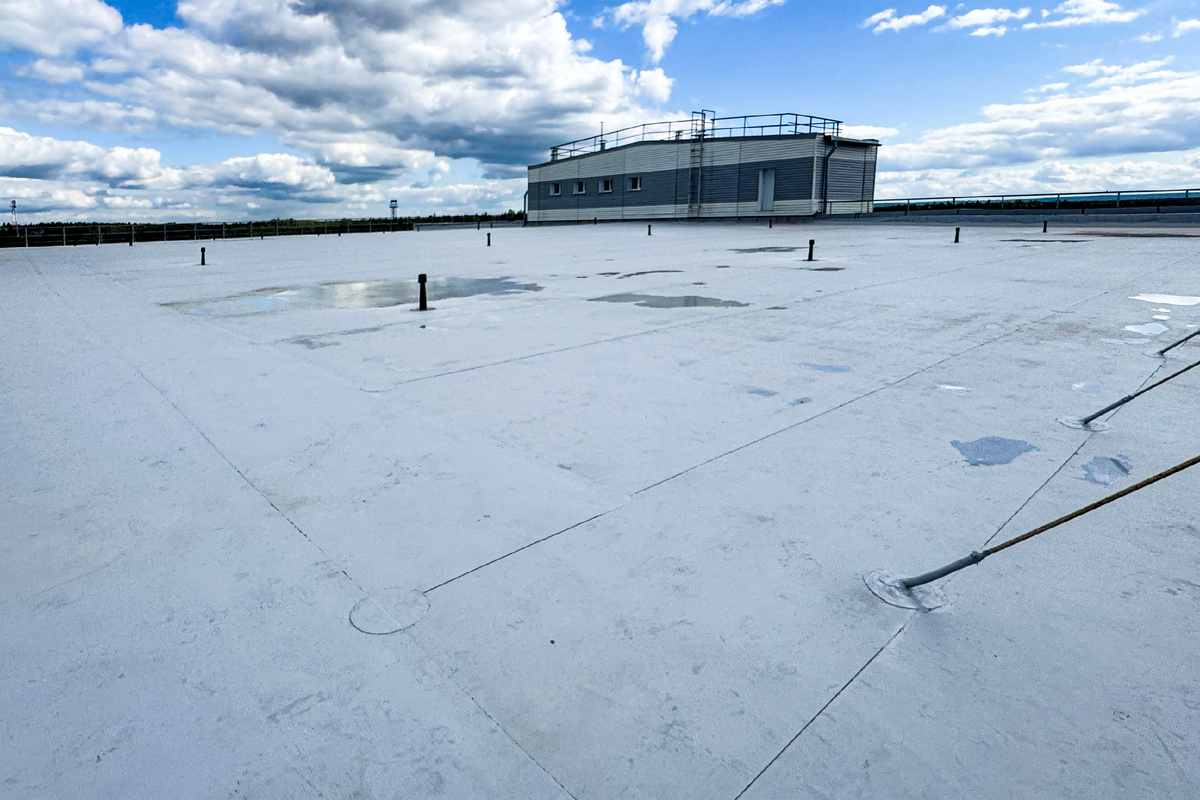При устройстве мембранной кровли особое внимание уделяется качеству сварных соединений. Именно через швы чаще всего происходят нарушения герметичности, поэтому технология их выполнения должна соблюдаться строго. Сварка выполняется горячим воздухом при температуре около +500 °C с контролем скорости подачи и давления. Для прямолинейных участков применяется автоматическая сварка, обеспечивающая равномерный прогрев и стабильное качество. В сложных узлах и примыканиях используется ручная сварка, позволяющая аккуратно проработать каждый сантиметр. После сварки проводится механическая проверка швов — визуальный осмотр и контроль адгезии. Это позволяет убедиться, что соединение выполнено без непроваренных зон и воздушных включений. Качественно выполненный сварной шов формирует монолитную, полностью герметичную систему, обеспечивающую долговечность мембранного покрытия и его устойчивость к эксплуатационным нагрузкам.