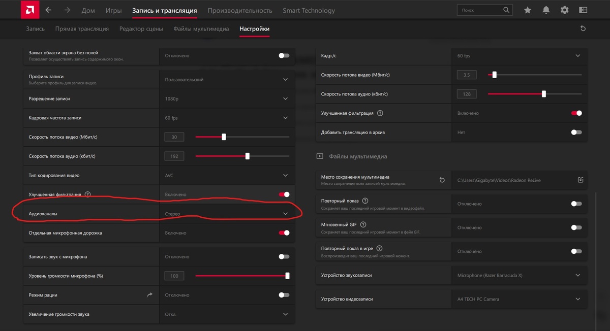 Если для записи вы используете программу AMD Software: Adrenalin Edition и у вас в конечном файле нет звука то причина имеет несколько причин: 1. Нужно проверить драйвера, особенно на звуковые устройства. 2. В настройках программы в аудиоканалах выставить стерео 3. Основное: в параметрах звука в устройствах вывода выбрать то устройство к которому подключаются колонки или проверить несколько вариантов, в основном проблема с устройством вывода не дает записывать звук на видео, программа не умеет работать со многими сторонними устройствами типа наушников или подключенных по USB.