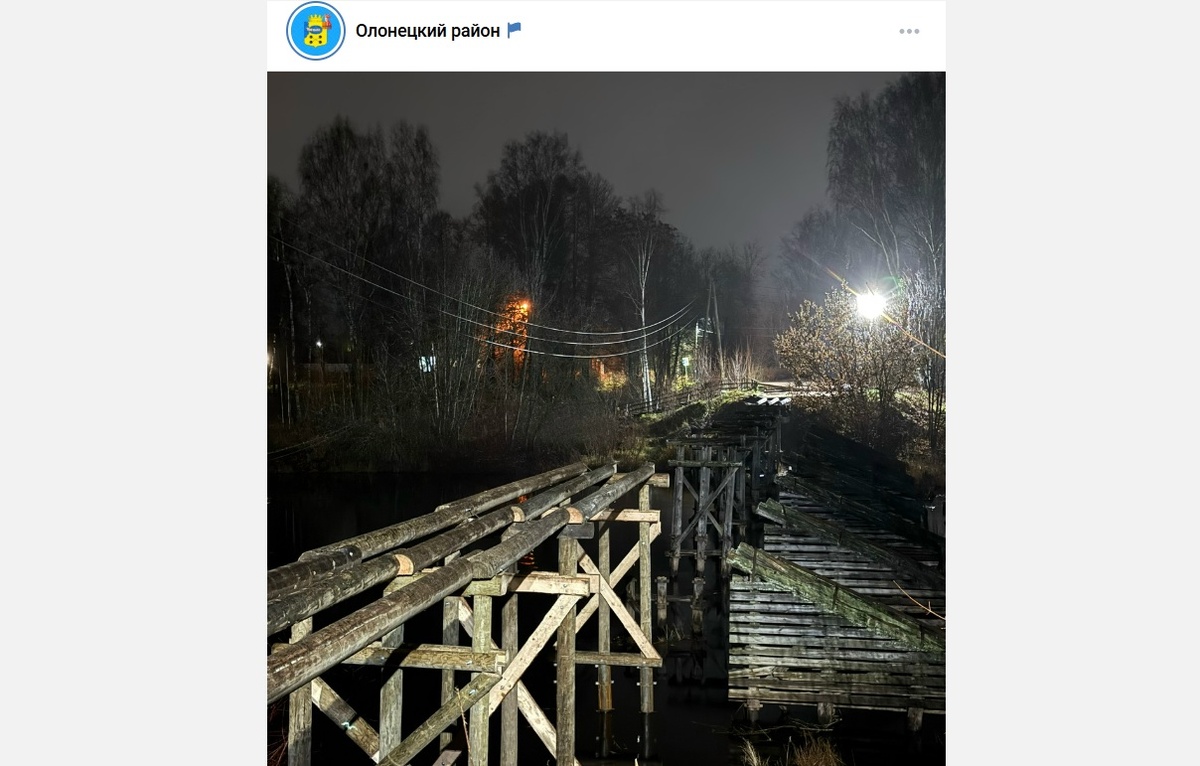 В Олонце отремонтируют пешеходный мост. Деревянная переправа соединяет набережные зоны улиц 30-летия Победы и Пролетарской. Переправу приведут в порядок в рамках проекта «Формирование комфортной городской среды». В администрации района сообщили, что смета ремонтных работ составила 5,03 млн рублей, из них половина это деньги из федерального и регионального бюджетов. Работы ведутся с конца октября, а полностью реализовать проект планируют в апреле 2026 года. Ранее на строительство моста в Петрозаводске через Лососинку в районе Кургана выделили почти 10 млн рублей.