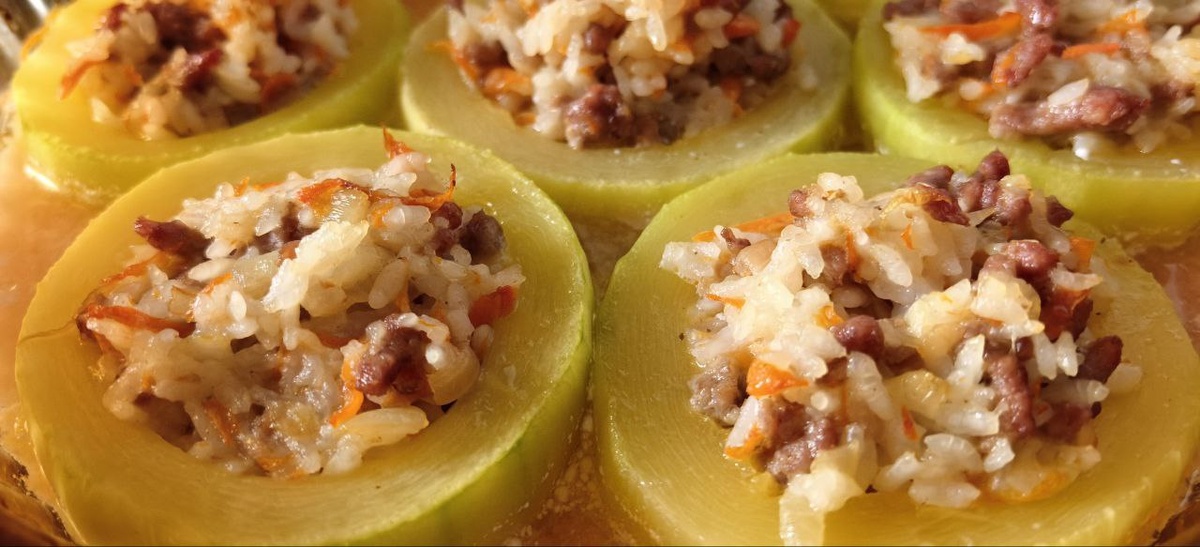Сегодня в меню вермишелевый суп с курицей и кабачки, фаршированные рисом и мясным фаршем😊