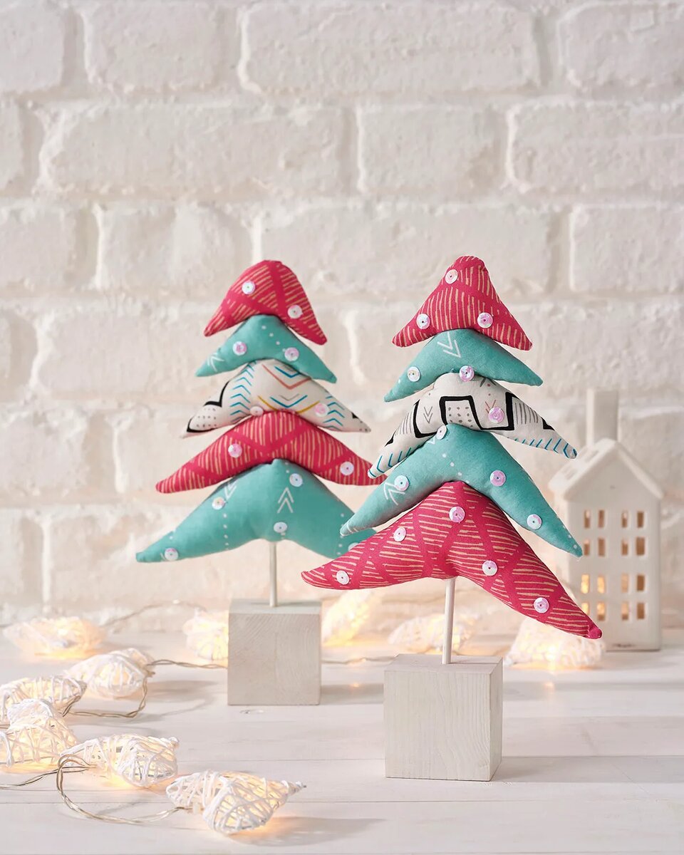 Текстильные украшения являются отличным Рождественским и Новогодним декором. Рукодельницы его могут сделать сами, а также подготовить такие милые елочки на подарок своим близким и знакомым. Такие елочки не очень затратны по материалам и по времени. И если захотеть, то можно сделать целый лес из таких елочек!