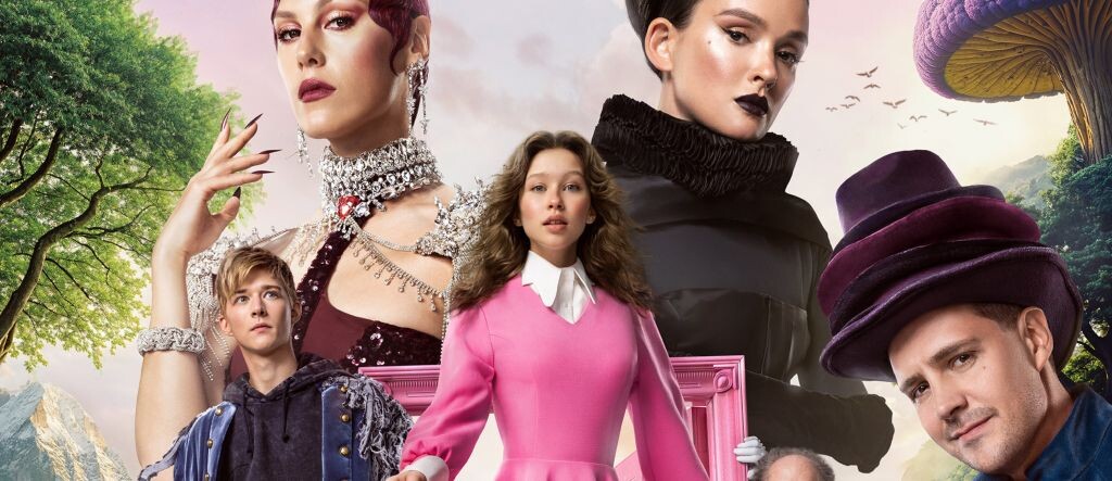 Дальше они падают, оказываются, в Стране Чудес, и тут начинается вообще совершенно что-то непонятное. Ну, то есть знаете, Алиса в Стране Чудес — она сама по себе довольно специфическая. Но в книге и в большинстве её интерпретаций это всё выглядит как то интересное сумасшествие, через которое смотрят на мир многие великие художники, писатели. В нашей же версии это просто старые добрые психи. Встречает её в волшебной стране какая-то чёрная тётка — Герцогиня. Извините, а это вот вообще кто? Это аналог белой королевы, но почему-то чёрная? Или это та герцогиня, которая двоюродная сестра королевы — женщина маленького роста с уродливым лицом? Что это за персонаж, кто-то мне пояснит? Вокруг неё почему-то не привычные нам и классические для Алисы в стране чудес карты, а какие-то странные люди, застрявшие в музыкальных инструментах. Что они там конкретно делают, не поясняется, но они поют песню про то, что они антиподы и что-то про антипятки. Тут давайте чуть-чуть перейдём на сами песни. Да, я знаю, что это песни на стихи Высоцкого, вроде бы даже был мюзикл советский. Но вы меня извините, конечно, я смотрю фильм. И то, что было приемлемо для одного произведения, может быть, совершенно странно и не к селу, не к городу в другом. По крайней мере, хотя бы стоило как-то пояснить, что за антипятки, откуда вообще это всё взялось. Сама по себе песня неплохая, мотив заедающий, танец украден у Леди Гаги напополам с Уэнсдей. Но без каких-либо пояснений это всё выглядит крайне странно в нехорошем смысле.