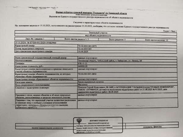 Название: Право на заключение договора аренды на земельный участок с кадастровым номером 72:16:0301001:2873, расположенный по адресу