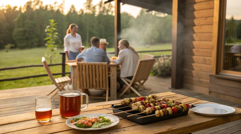 При переходе по ссылке пользователь видит страницу с предложением выбрать один из четырёх домиков. Каждый из них подписан как «Последний вариант»: таким образом злоумышленники пытаются вызвать ощущение срочности. После выбора домика потенциальную жертву переводят на страницу бронирования, на которой предлагают выбрать дату заезда, число гостей и ввести «промокод».