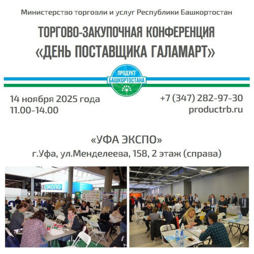 Министерство торговли и услуг РБ приглашает местные бренды на переговоры с ритейлерами «Галамарт» и «Шурупинск», которые пройдут 14 ноября в Уфе Министерство торговли и услуг Республики Башкортостан совместно с проектом «Продукт Башкортостана» приглашает производителей непродовольственных товаров из региона принять участие в торгово-закупочной конференции «День поставщика ГАЛАМАРТ и ШУРУПИНСК», которая состоится 14 ноября 2025 года в выставочном комплексе «Уфа-ЭКСПО». Как отметил министр торговли и услуг РБ Азат Аскаров, участие в мероприятии предоставляет местным производителям возможность вывести свою продукцию на федеральный уровень и заключить прямые контракты с крупными ритейлерами. По словам министра, главной задачей конференции является организация прямых переговоров между производителями и закупщиками сетей, в рамках которых стороны смогут обсудить условия поставок и партнерства, а производители получат подробную информацию о требованиях к качеству и оформлению товаров. Партнер