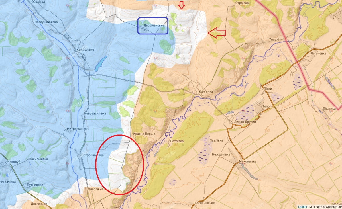 ... о главном. На севере Харобласти, в Волчанске, бои окончательно сместились в южную часть города – за реку Волчья. Шансы пр-ка вернуть позиции, удерживаемые им полтора года чуть меньше нулевых. … наши постепенно отжимают врага на южные окраины Купянска в м/р Юбилейный – это западная половина города на западном же берегу Оскола. На восточном ЛБС давно без перемен. … командование все же приняло решение о создании сухопутного, по правому берегу Оскола, снабжения наших наступающих в Купянске частей. … С той стороны мушки начинают … Аналогичная ситуация севернее Гуляйполя, в Днепрообл. Порвав в клочья линию укреплений пр-ка по р.Янчур, наши уверенно продвигаются к трассе на Гуляйполе. Мало того, бьют еще и на север – на Орестополь. … Не менее печальна для пр-ка ситуация в Красноармейске-Димитрове. Перед вами три карты пр-ка о ситуации в этом котелке. … в Светлом и Ровном уже действуют рейдовые отряды русских штурмовиков. Ну и на закуску сладенькое – карта опять же пр-ка о продвижении наши