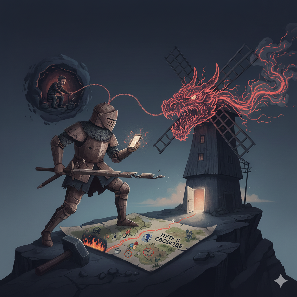 И моя сегодняшняя статья – и есть та самая карта. Она не отменяет путешествия. Она не отменяет работы, усилий, дисциплины и дискомфорта. Она просто убирает с этой карты все ложные пути, все болота, все тупики, в которых вы могли бы блуждать годами, а то и десятилетиями. Она показывает вам прямой, хоть и не всегда легкий, путь к выходу. Вы можете потратить десять лет, пытаясь проломить головой стену, воюя с симптомами и копаясь в прошлом. А можете потратить один день, чтобы найти на карте дверь, и оставшиеся годы просто методично, шаг за шагом, идти к ней. Перестать быть Дон Кихотом. Повесить свои доспехи на гвоздь. И начать спокойно, методично перепрошивать мозги своему охраннику-паникеру. Это долгая работа. Но это единственный путь, который ведет не к временному перемирию, а к настоящей, прочной и осознанной свободе. Свободе жить свою жизнь, а не тратить ее на войну с ветряными мельницами.