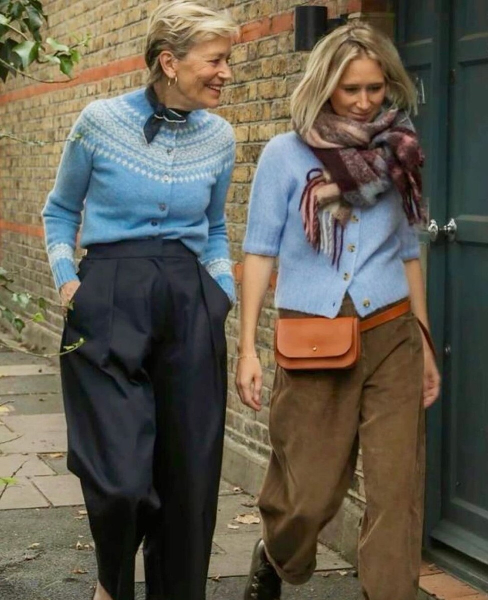 И вельвет, и трикотаж вызывают у меня одинаковые ассоциации: осеняя палитра, мягкие фактуры, долгие прогулки в прохладное время года в ожидании согревающего уюта. Создание комфортных и стильных образов с вельветовыми брюками/юбкой и свитером/кардиганом. С чего начать? Выбор цвета и текстуры. При сочетании вельвета и трикотажа обратите внимание на цветовую гамму. Проще всего сочетать с нейтральными цветами: белым, бежевым, серым, черным, темно-синим. Еще один простой вариант - использовать разные оттенки одного и тоже же цвета. Сложнее с выбором комбинаторных товарищей для яркого вельвета. Можно пойти путем попроще - и выбрать "спокойного" партнера в тон. А можно добавить яркости декоративными акцентами - вышивкой, жаккардом. Важно, чтобы разноцветный трикотаж все же перекликался с цветом брюк / юбки. Выбор цветов в осенней палитре, палитре самой природы - один из самых выигрышных вариантов для вельвета и трикотажа Не нужно опасаться структурированных трикотажных изделий