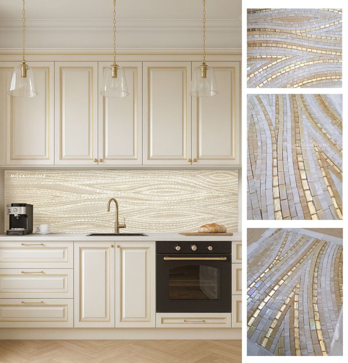 Лёгкий золотой акцент подчеркнет фурнитуру Вашей кухни