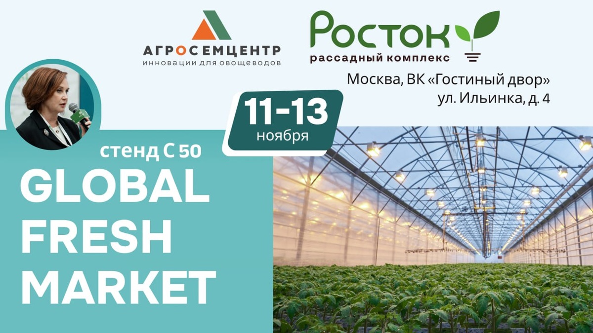 Друзья, уже завтра ждём вас на выставке в Москве! 📍11–13 ноября - Global Fresh Market, Москва (промокод на вход только для наших гостей😉: GFMEL843) 📌 Стенд С50 — рассадный комплекс «Росток» и «Агросемцентр» ☝️Что покажем и о чём вы сможете узнать на стенде - рассказываем тут. Приходите - мы вам рады!