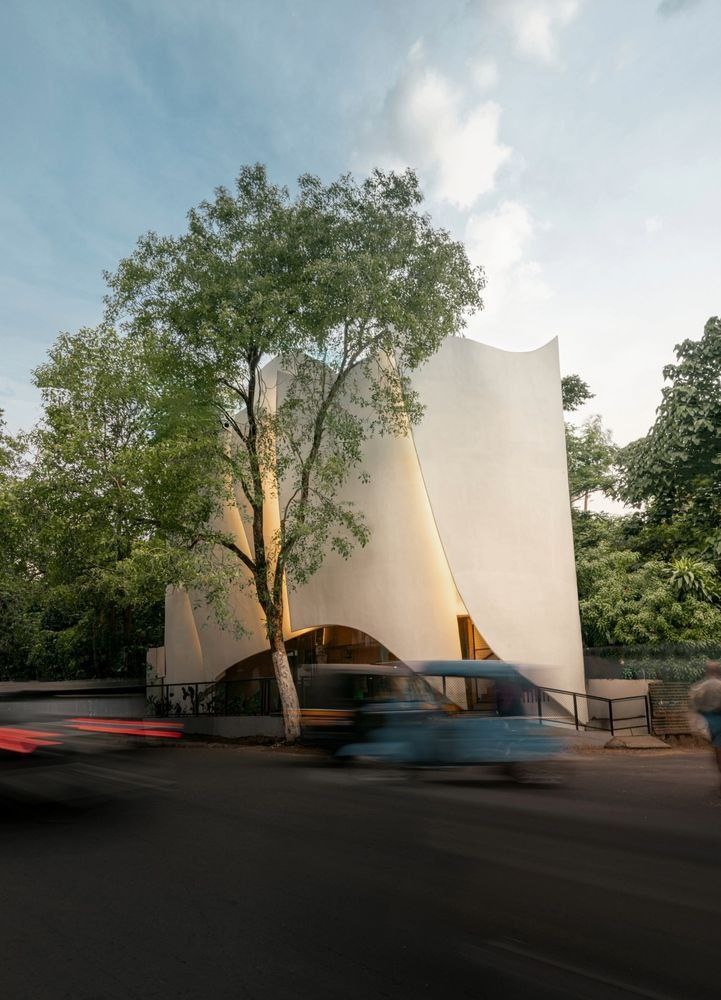 В индийском городе на участке площадью всего 76,4 квадратных метра архитекторы создали детский сад, контрастирующий с традиционным представлениям о государственных учреждениях. Главной особенностью здания стал пластичный фасад из бетонных «лепестков», которые одновременно служат несущими конструкциями и визуально связывают постройку с окружающим природным окружением. Игра света и тени на скульптурных поверхностях создает визуальную динамику, а вечером мягкая подсветка превращает здание в ориентир для всего района. Большие проемы обеспечивают постоянную визуальную связь с внешним миром, а продуманная цветовая палитра и мебель, созданная пропорционально детскому телу, формируют комфортную и безопасную атмосферу #архитектура Название объекта - Anganwadi Childhood Care Facility Авторы - Fahed+Architects Место расположения - Кочи, Индия