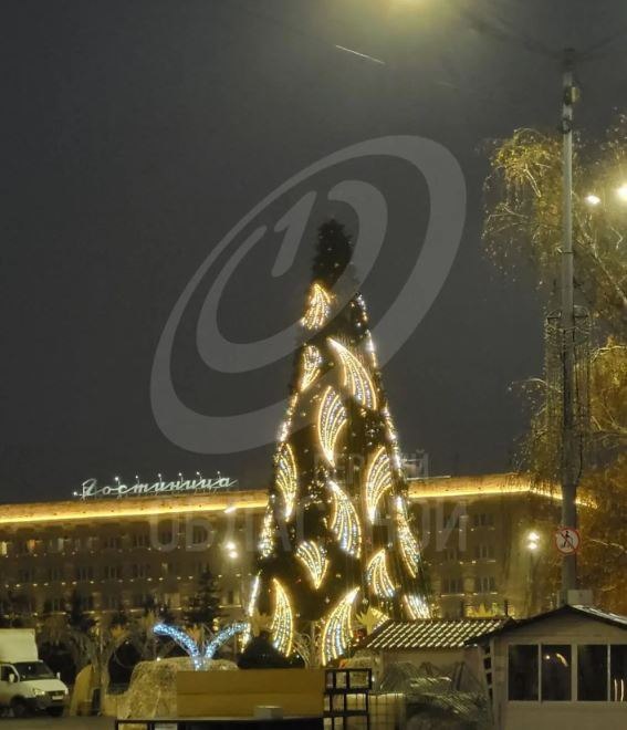 Фотофакт: прямо сейчас в Орле на главной площади проводят тестовый запуск иллюминации главной елки города
