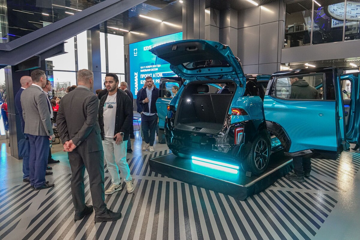 В визит-центре КАМАЗа Набережных Челнов показали прототип российского электромобиля «Атом». Директор визит-центра ПАО «КАМАЗ» Эрик Хайруллин сообщил, что эта встреча проходит в рамках дискуссионного клуба «КАМАЗ-2035», который организовывается для студентов и всех неравнодушных к тому, как развивается промышленность страны. «Наша задача заинтересовать челнинскую молодежь новыми технологиями. Это третья встреча из цикла. Мы уже дискутировали о городе будущего, о профессиях, которые будут востребованы, об инновационных технологиях. Ребята из проекта «Атом» откликнулись на приглашение прибыть в Набережные Челны, чтобы сделать несколько интересных встреч в течение двух дней для молодых людей. Чтобы они оставались здесь учиться и работать, приносили пользу Татарстану, родному городу и заводу», – сказал Эрик Хайруллин. В 2026 году электромобиль можно будет увидеть на дорогах России. «Первый российский серийный электромобиль – полностью разработка нашей страны. В первую очередь, это российска